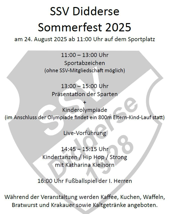Das Sportangebot des SSV Didderse kann auf der Hompage unter www.ssv-didderse.de eingesehen werden.